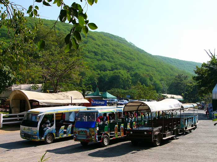 หน้าประตูมีรถพ่วงบริการตลอด ไม่ต้องเดินไกล