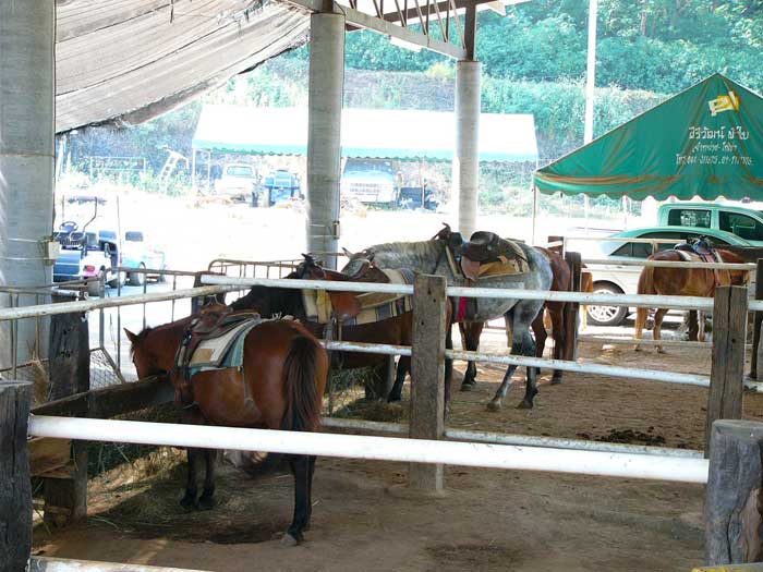 นำม้ามารอให้นักท่องเที่ยวเลือกขี่กัน ใครหนักเกิน 70 ก.ก. อดขี่นะขอรับ ม้ารับไม่ไหวอ่ะ