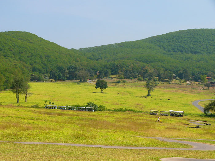 นั่งรถพ่วงชมสถานที่ และไปยังจุดเครื่องเล่นต่าง ๆ