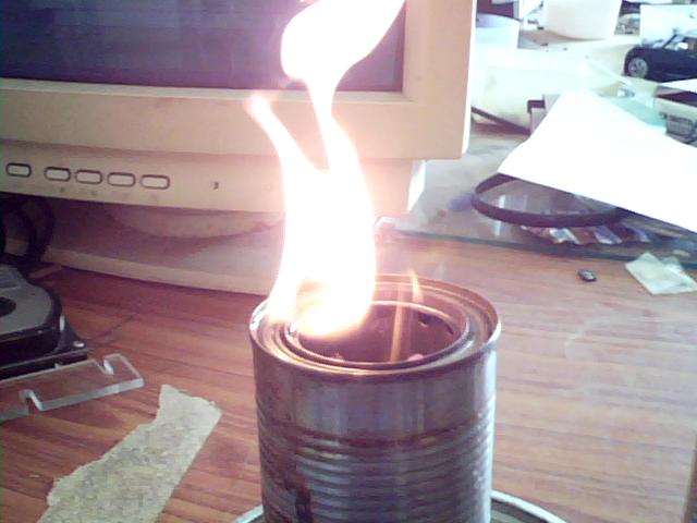 การไส่เชื้อเพลิง ไส่เข้าไปในกระป๋องปลากระป๋อง โดยจุดไฟจากทางข้างบน