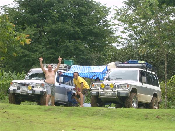 นั่งกินข้าวกันข้างรถเลยครับ ทำหลังคา กันฝนหน่อย ฝนปลอย ทั้งคืนเลย