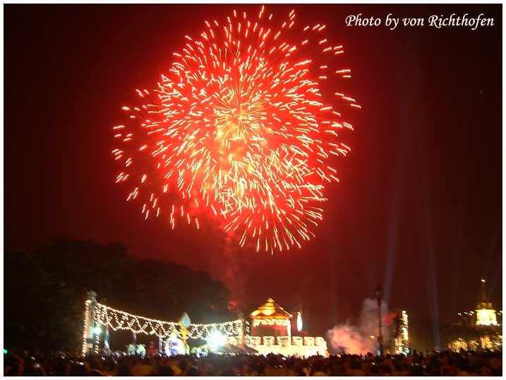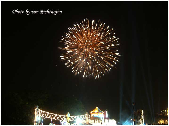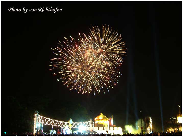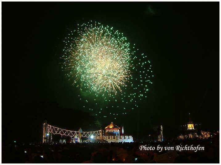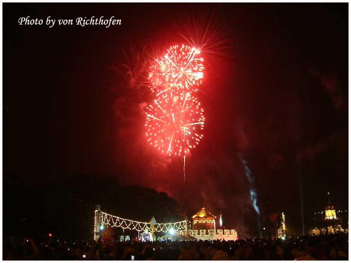 ผมเองเลือกออกมารับเสด็จพระเทพฯที่ประตูท่าน้ำแทน เอาไว้ท่านเสด็จเข้าไปแล้วผมค่อยออกเดินต่อ แต่รางวัลที่ได้รับระหว่างรอคือดอกไม้ไฟชุดแรกที่สนามหลวง