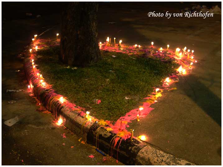 เดินมาเรื่อยๆผ่านถนนราชดำเนินกลางและราชดำเนินนอกจนถึงหน้าตึก UN เจอสิ่งนี้ครับ เทียนกลุ่มเล็กของลูกๆที่รักที่รักพ่อของแผ่นดินจุดรวมกันเอาไว้ที่ใต้ต้นไม้