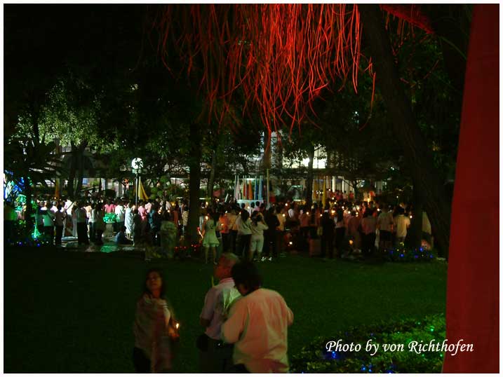 ผู้คนยังมาเฝ้าอย่างไม่ขาดสาย คืนนี้ต่างก็จุดเทียนในมือทุกคนรอที่จะร้องเพลงสรรเสริญพระบารมีตอนสองทุ่ม