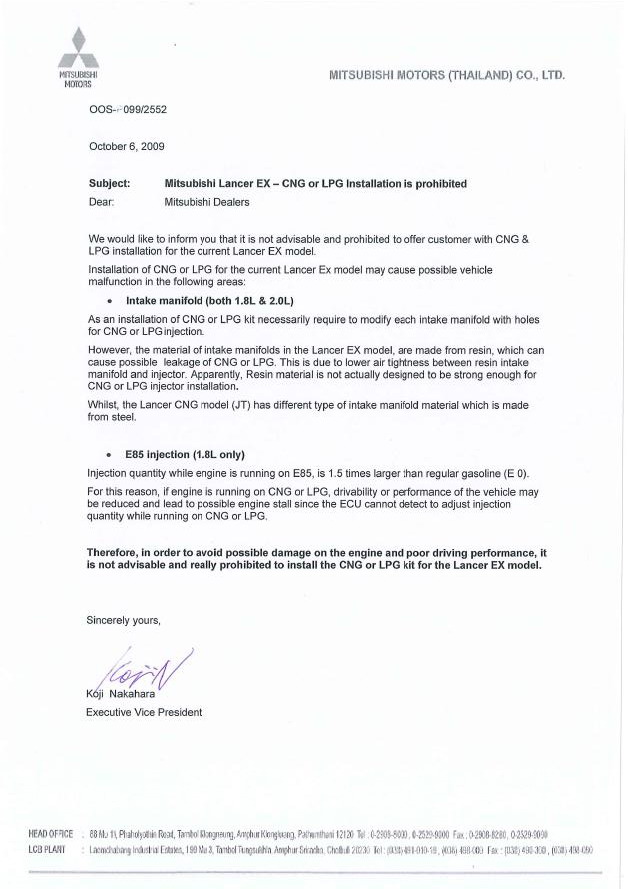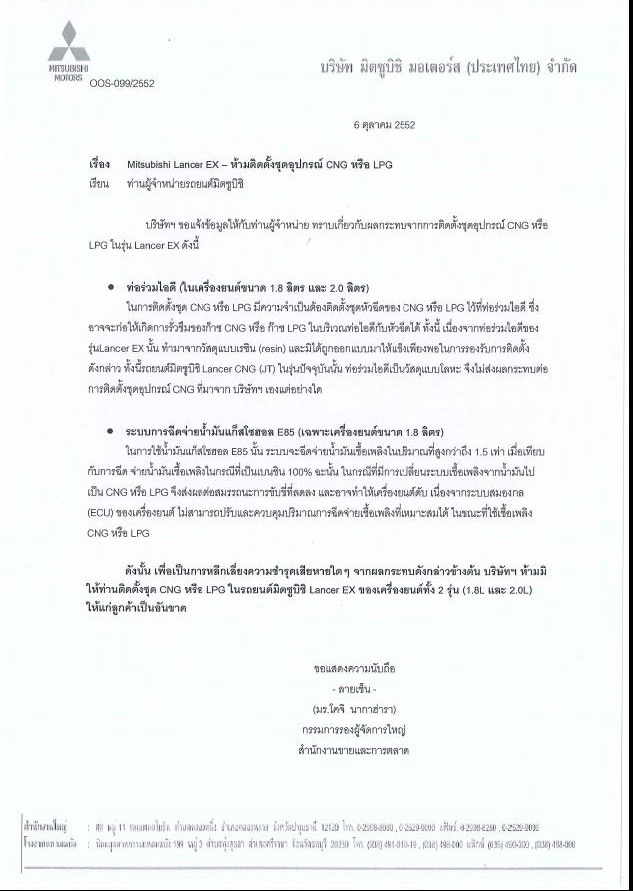 ถามเพื่อนร่วมงานที่ใช้เก๋งมิตซูติดแกส เขาบอกผมว่าทางศูนบ์บริการที่บางพลัดได้แจ้งเขาเช่นกันตอนที่จะซื้อรถ