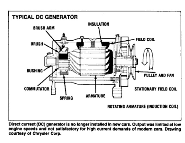 แทนที่จะจ่ายเป็นกระแสเข้าโดยตรงที่ armature ชุดหลักที่หมุนตลอดเวลาผ่านแปรงถ่านก็จ่ายเข้า Field coil ชุดเล็กที่ไม่ต้องหมุน แล้ว ที่เหลือกฎมือขวามันทำงานแทนให้หมดโดยไม่ต้องต่อตรงเข้าตัวที่มีการหมุนเหมือนระบบมีแปรงถ่านให้เกิดการสึกหรอที่ต้องซ่อมกันบ่อยๆ