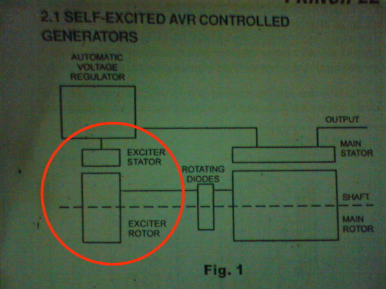 สรุปแล้วแกนเพลาเดียวกันมันมีสามส่วน คือ PMG , Exciter ,Main Roter แล้วลืมแปรงถ่านไปได้เลย