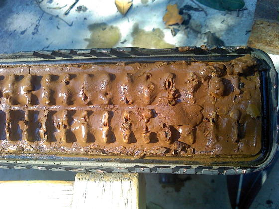 วันก่อนหลังจากเจาะใส่จมูกอินเตอร์ ยังดีใจว่าเครื่องไม่ร้อนแล้ว3000rpmอยู่ที่80นิดๆ มาวันนี้ไม่มีอะไรทำก็กำลังมองหาที่ติดตั้งตัววัดระดับน้ำในหม้อน้ำ มองไปมองมาเห็นมีตะกันในหม้อน้ำ มีได้ไงรถผมเติมน้ำยาไม่เคยขาดน้ำยังเขียวอยู่เลย เลยตัดสินใจถอดยกหม้อน้ำออกมาแงะๆเปิดฝาบนฝาล่างออก ก็อย่างที่เห็นคับ