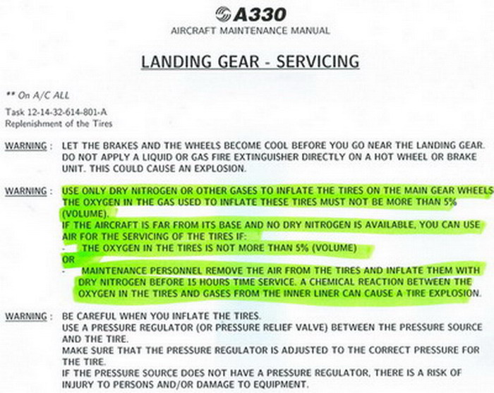 ยางเครื่องบินที่ผมใช้บินเมื่อเดือนที่แล้วผมก็ใช้อากาศธรรมดากดใส่ยางเองกับมือเพราะเครื่องมันอยู่ในโรงเก็บที่มีปั้มลม ถ้ามันเสี่ยงถึงตายผมคงไม่ทำหรอกครับเพราะผมขับเองตายเอง บินไม่เกินสามพันฟิตเท็กอ็อฟกับแลนดิ้งไม่เกิน 60น็อต อากาศธรรมดานี่ชิวๆ แต่เครื่องพานิชนี่ห้ามเด็ดขาดเพราะอย่างที่ผมเล่าข้างบน