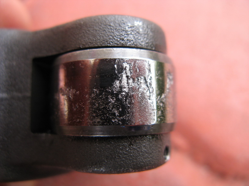 เกิดขึ้นได้สามอย่างครับ น้ำมันหล่อลื่นขาดจากที่มันน้อยเกินไปจนขึ้นไม่ถึงบนฝาสูบอยู่ช่วงหนึ่ง หรือน้ำมันเครื่องหมดสภาพการหล่อลื่นจากการใช้งานที่นานเกินไปยิ่งเป็นสูบหนึ่งด้วยยิ่งมีโอกาสเป็นมากกว่าสูบอื่น อาการนี้จะเป็นร่วมกับแคมเป็นรอยแล้วกัดจนโลเลอร์เป็นรอยไปด้วยถ้าอาการนี้เปลี่ยนไปก็เป็นอีกในเวลาไม่นานนัก