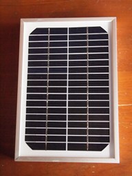 แผงโซลาร์เซลล์ ชนิดผลึกรวมซิลิคอน (Polycrystalline) ผลิตไฟฟ้าได้สูงสุด 5 W กำลังไฟ 12- 17 V สูงสุด 20 V กระแสไฟฟ้า 250 mA ราคา 450-500 บาท ถ้าซื้อเยอะต่อรองราคาได้ค่ะ