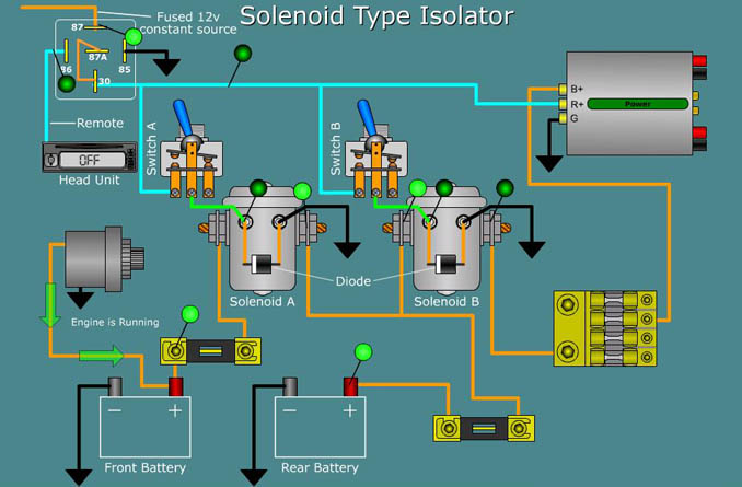 รูปที่แนบมาเป็นวงจรภายในของ Battery Isolator โดยทั่วไปครับ