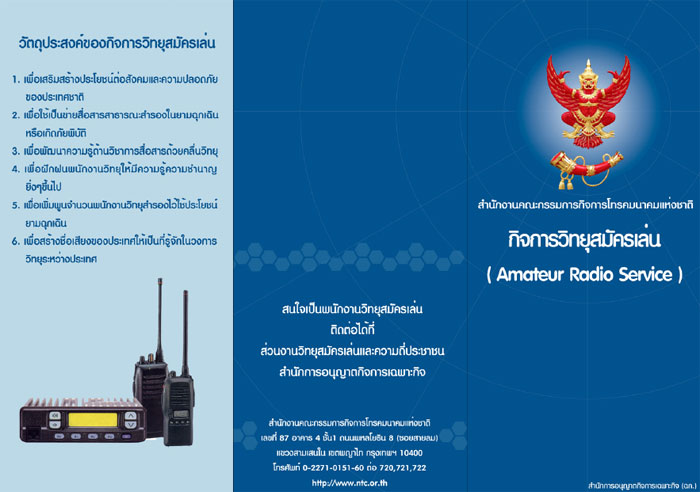 ติดต่อได้ที่ส่วนงานวิทยุสมัครเล่นและความถี่ประชาชนสำนักการอนุญาตกิจการเฉพาะกิจ
