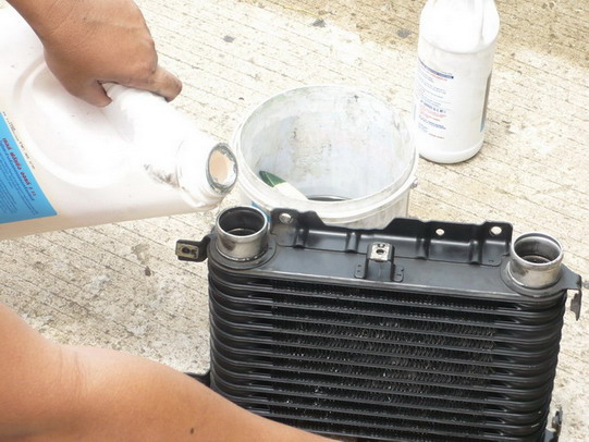 ใส่ลงไป แล้วเขย่าไป เขย่ามา แล้วเททิ้ง..อยู่หลายรอบ...จนพอสังเกตด้านในได้ว่า เห็นสีขาวๆของเนื่อโลหะด้านใน..(หมดน้ำมันเกือบๆ5ลิตร)