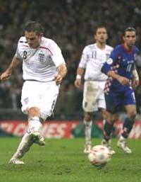 อย่างไรก็ตาม ในนาทีที่ 56 “สิงโตคำราม” มาได้ลูกที่จุดโทษเมื่อ โคล หยอดบอลไปในกรอบโทษ เดโฟ ถูก โจเซป ซิมูนิช ถึงเสื้อล้มลงไปผู้ตัดสินจากสวีเดนชี้ไปที่จุดโทษและก็เป็น แฟร้งค์ แลมพาร์ด กระทุ้งเสียบมุมให้ อังกฤษ ไล่มา 1-2 แต่อีกสองนาทีถัดมาแฟนๆ เจ้าบ้านหายใจไม่ทั่วท้องเมื่อ เวย์น บริดจ์ พยายามสกัดบอลจากการหลุดขึ้นไปของ โอลิช แต่บอลกระแทกคานออกหลัง จากลูกเตะมุม โอลิช ได้โขกจ่อๆ คราวนี้ คาร์สัน โชว์ซูเปอร์เซฟสำคัญ แต่ บริดจ์ ก็ทำให้เพื่อนต้องมีงานอีกครั้งแตะบอลพลาด โอลิช ฉกเข้าไปยิงยังดีที่ คาร์สัน พุ่งไปรับบอลไว้ได้