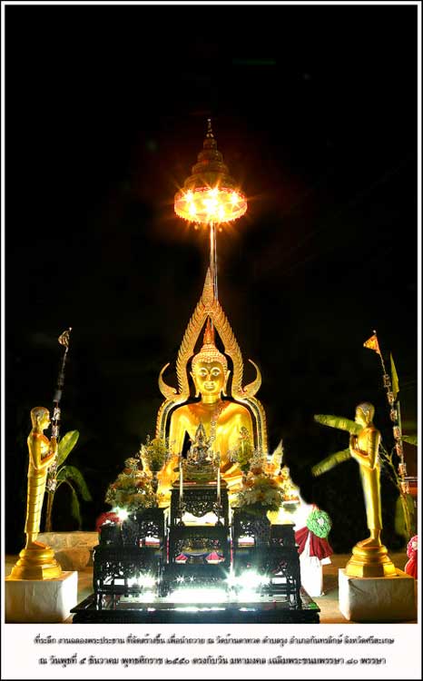 กำหนดการ ฉลองพระประธาน ณ วันพุธที่ 5 ธันวาคม พ.ศ.2550 บริเวณหน้าร้าน ปิยพรสแตนเลส ถนนตลิ่งชัน-สุพรรณบุรี (ตรงข้ามโชว์รูมฟอร์ด เลยแยกทางเข้าอำเภอบางปลาม้าเล็กน้อย) อ.เมือง จ.สุพรรณบุรี
