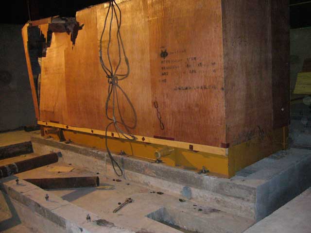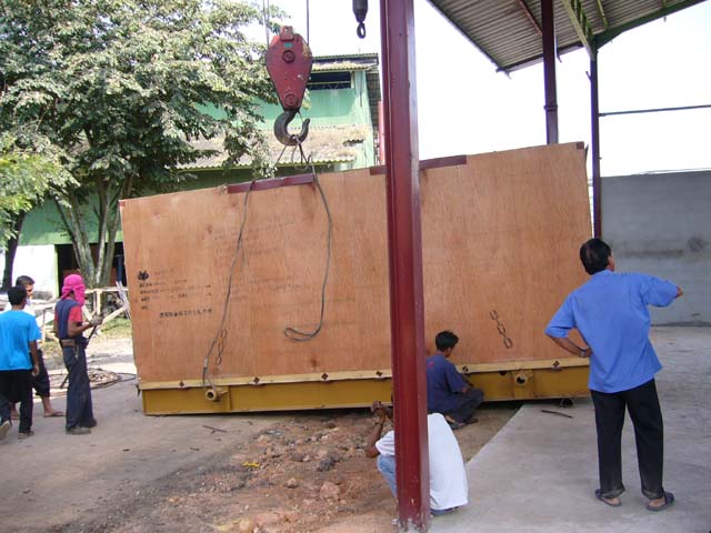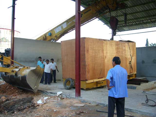 เอาเข้าได้หรือยังครับ รอชมอยู่ ถ้าผมเป็นท่านผู้เชี่ยวชาญเหล่านั้น ผมจะหาเพลาสัก 2 นิ้ว รองแคร่รับเครื่องด้านในอาคาร ส่วนด้านนอกใช้เครนยกให้สูงขึ้น หาไม้กระดานหนาๆ รองพื้นให้เรียบเป็นสะพาน แล้วเอาแป๊บ 6 นิ้ว หนาๆวางเป็นลูกกลิ้ง หาท่อไม่ใด้ก็ใช้ท่ออ๊อกซิเจนแทน แล้วใช้วิธีของคุณหนุ่ม ยิงบูมเข้าไปในอาคาร ใช้รอกดึงเครื่องเข้าไป หาลูกกลิ้งรองไปเรื่อย เดี๋ยวก็ถึงเอง ดูแล้วมันคันไม้คันมือน่ะครับ เลยอยากจะแสดงตวามขี้เท่อออกมา ไม่ทราบว่าคุณหนุ่มทำอย่างไรครับ