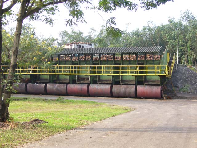 ผลปาล์มไหลตามช่องใส่ลงรถรางครับ