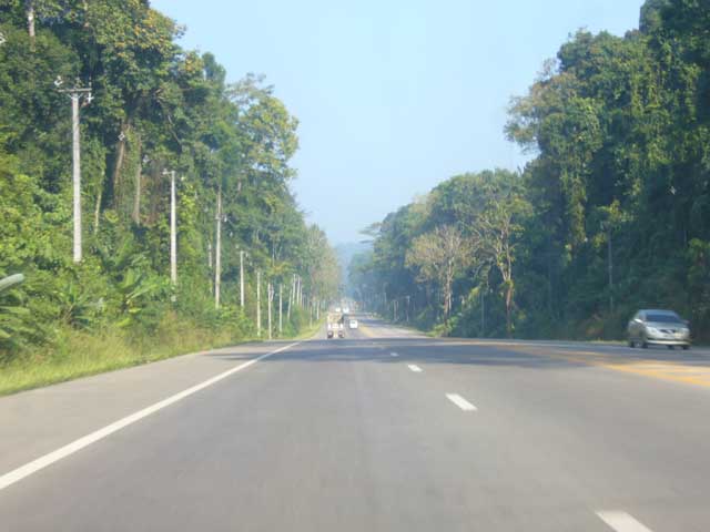 ถนนจากอ่าวลึก-กระบี่เป็นสี่เลนแล้ว ด้วยพลัง LPG ที่ยังเหลือจากปั๊มแกสที่ทับปุด ยังพอขับไปได้ถึงสุราษฎร์