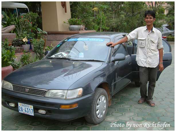 ทันทีที่ผมถึงสนามบินเสียมเรียบก็โชคดีประเดิมเลยเพราะว่าผมได้พบกับคนขับรถและรถให้ใช้อีกหนึ่งคัน คนขับรถชื่อ นายฮิม มาฮีต แต่ผมเรียกว่านายมาตินเพราะสะดวกปากดี คนนี้พูดภาษาอังกฤษได้ดีพอสมควรเลยไม่มีปัญหาเรื่องการพูดคุยกัน ระหว่างทางก็คุยกันสาระพัดเรื่อง ตั้งแต่ครอบครัวจนถึงการเมืองให้การเดินทางไม่เหงาปาก
