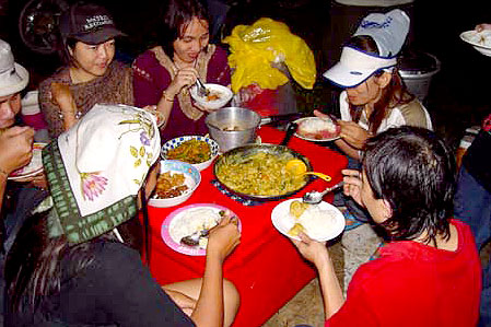 ตามปกติผมจะเอาของแห้งอาหารสดไปแลกข้าวกินครับเพราะส่วนมากจะนั่งโม้จนไม่มีเวลาทำอาหาร