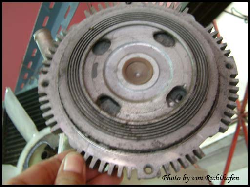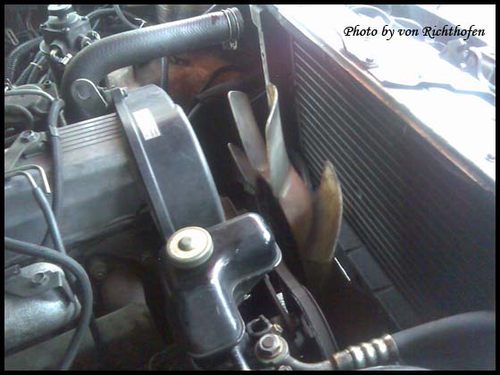 ไหนๆแล้วตรวจความตึงของสายพานและสภาพไปเสียเลยเพราะหม้อน้ำและบังลมมันหายไป พื้นที่โล่งๆทำอะไรก็สบายมือ