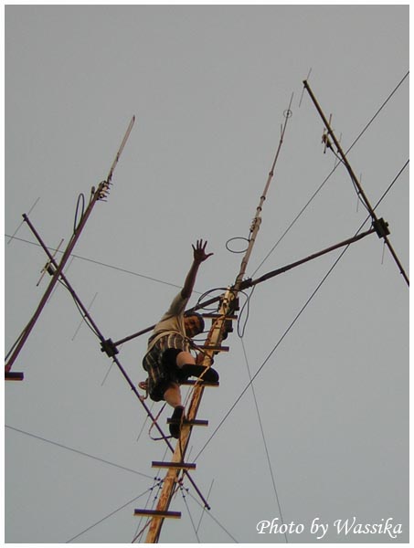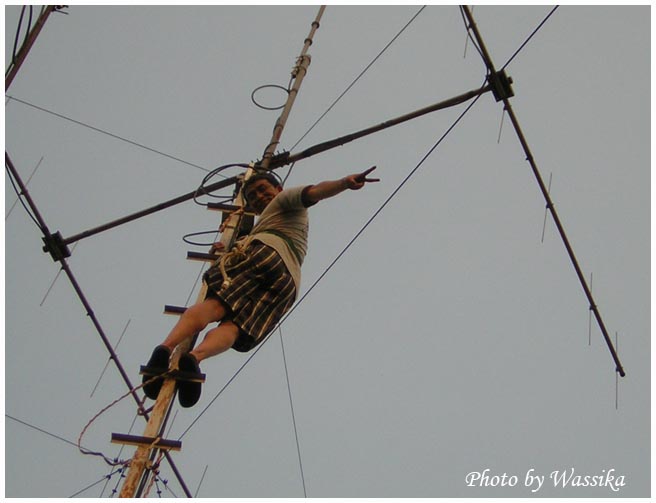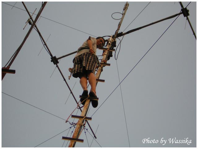 วันนี้ปีนขึ้นไปดูแลเสาอากาศและสายอากาศ ก็รู้ตัวว่าแก่เกินไปที่จะห้อยโหนบนยอดเสาเสียแล้ว มีความคิดว่าจะเอาสายอากาศลงก่อนที่จะไม่มีแรงปีนขึ้นไปดูแล
