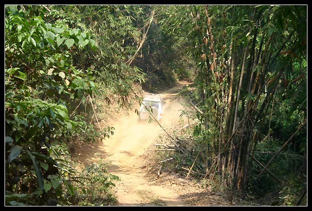 ล้อหน้าขวาใช้วิธีชะโงกหน้าดูได้เพราะถ้าทางมันโหดกฎข้อแรกคือต้องเปิดกระจกขับ เวลารถลงหลุมหัวจะได้ไม่โยกไปโขกกระจกแตก พวกชอบเปิดแอร์ลุยป่าหัวแตกหัวโนไปหลายคนแล้ว แต่ทางซ้ายต้องให้กระจกมองมุมเป็นตาให้ครับ พวกที่ชอบเข้าป่าเป็นประจำ จะติดนิสัยชำเลืองมองเจ้ากระจกบานเล็กนี่ตลอดทาง
