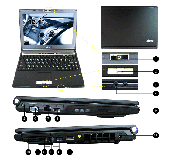 12.1" Wide XGA Amazing Crystal Vision TFT LCD display, resolution 1280x800