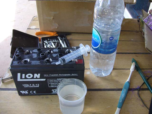พร้อมเติมน้ำกรดและชาร์จไฟให้ด้วย แต่ผมบอกไม่ต้องชาร์จ เพราะข้อยจะทำเอง