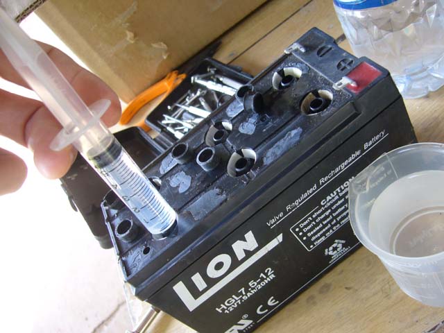 อย่ากระนั้นเลย ด้วยความขี้เหนียวเป็นที่ตั้งจึงถอดแบต ฯ ออกมารื้อจุกที่เติมน้ำกลั่น