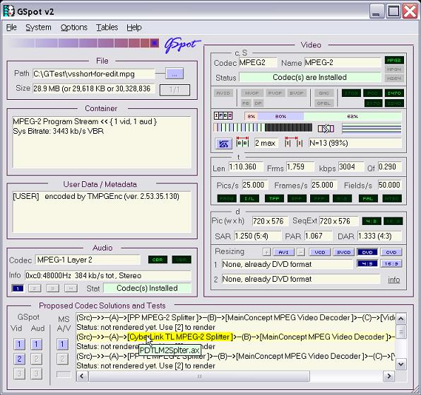 หลังจากติดตั้งแล้วจะได้ Tool ตัวเล็ก ๆ ไว้ตรวจสอบ Codec ว่าไฟล์นั้นใช้อะไรเป็นตัวเข้ารหัสดังภาพ หรืออาจ download ได้จาก http://gspot.headbands.com/