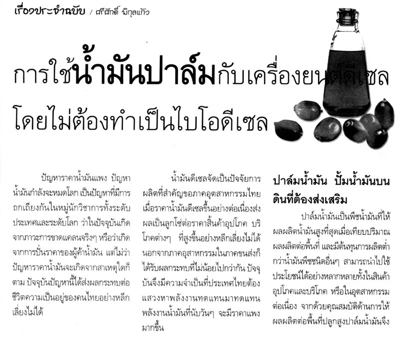 การใช้น้ำมันปาล์ม กับเครื่องยนต์ดีเซล.. โดยไม่ต้องทำเป็นไบโอดีเซล