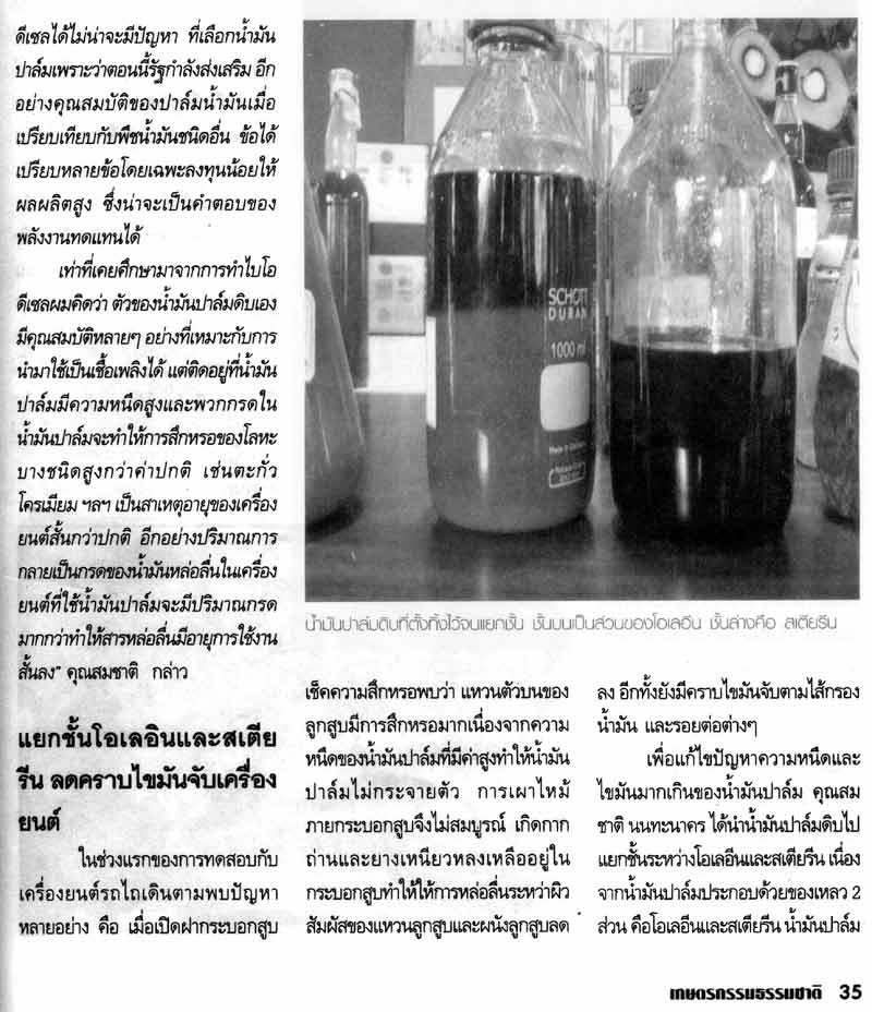นี่ไงทำไมพ่อหลวงของเราจึงทรงเลือกที่จะเริ่มต้นกับปาล์มโอเลอีนไม่ใช่ปาล์มดิบที่มีปาล์มสเตอร์รีนผสมอยู่ด้วยเนื่องจากความหนืดของไขและกรดไขมันสูง