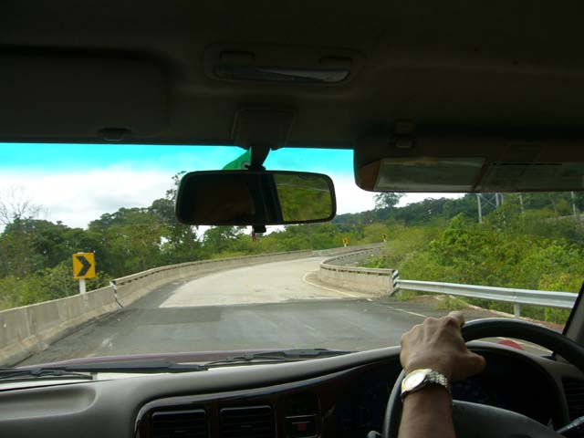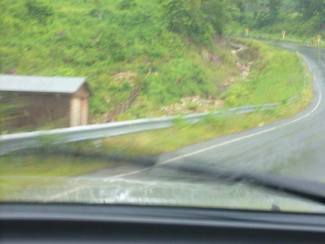 ขอนำเที่ยวต่อเลยแล้วกัน กินอิ่มก็ขับรถย้อนกลับขึ้นมาบนเขา ถนนด้านซ้ายโดนน้ำเซาะจนแหว่ง