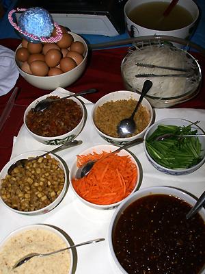 ( ผัดไทยประตูผี ) สั่งผัดไทยทรงเครื่อง ที่ประกอบไปด้วย : วุ้นเส้นหรือ เส้นจันท์ อย่างใดอย่างหนึ่ง มันกุ้ง กุ้งสด
