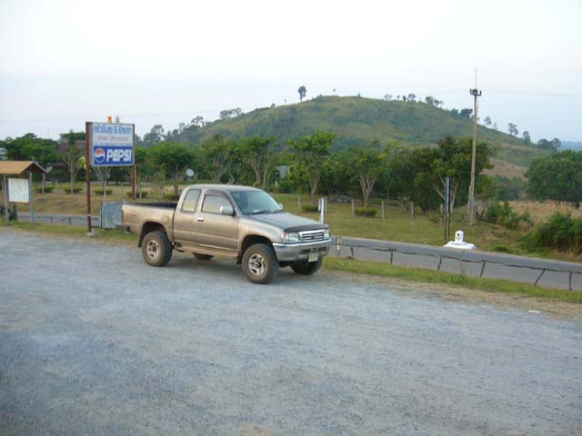 ร้านนี้ชื่อครัวอิ่มสุข อยู่บนเนินมองไปจะเห็นเขาแผงม้า