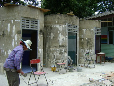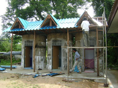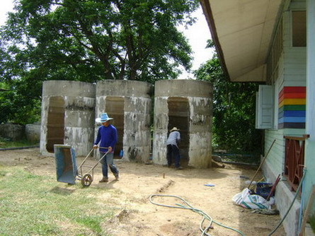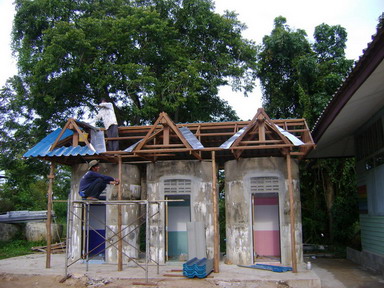 ขณะกำลังก่อสร้างห้องน้ำของนักเรียนโรงเรียนวัดวังบุญ