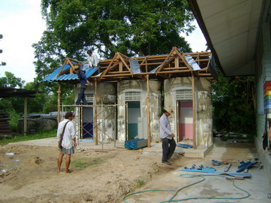 หลังคากำลังดำเนินการก่อสร้างครับ ตอนนี้ช่างขอไปเกี่ยวข้าว 5 วัน และในห้องน้ำทุกห้องจะมีฝักบัวอาบน้ำ และอ่างล้างหน้าด้วยครับ ใบอนุโมทนาบัตร ผมรบกวนใส่รายชื่อต่อข้อความนี้พร้อมที่อยู่ของคุณมยุรีด้วยครับ ใน e-mail ผมเปิดไม่พบครับ