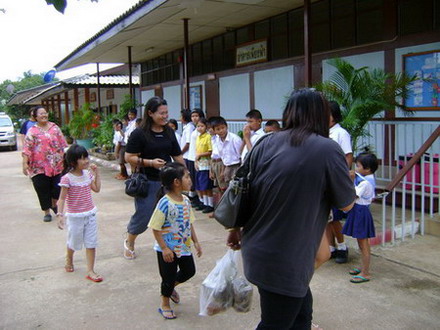 ผอ. จิระ และคณะนักเรียน รับมอบสิ่งของและเงินบริจาค...จากคุณมยุรีและคณะ......