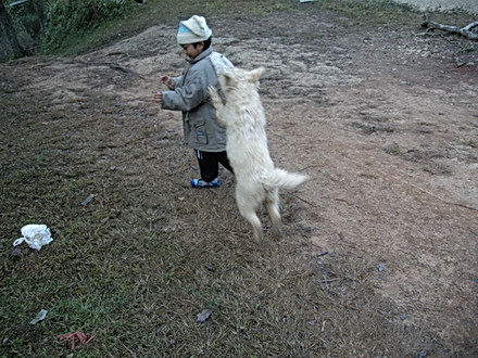 เจ้าตัวนี้ไม่รู้มาจากไหน เห็นรุ่นเดียวกันกระโดดใส่เลย เดินหนีไปทางไหนมันก็ตามมาเล่นด้วย