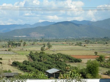 ยื่นชมวิวทุ่งนาหน้าวัดไปสะดุดตาตรงกองฟางทำเหมือนกระท่อม รูปทรงต่างจากภาคกลาง แต่จุดประสงค์คงไม่ต่างกัน
