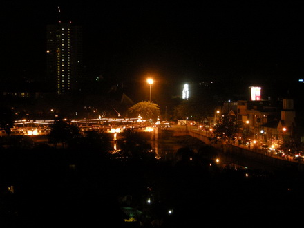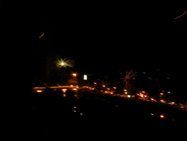 เวลาแห่งการเฉลิมฉลองได้เริ่มขึ้นแล้ว มองผ่านหน้าต่างจะเห็นโคมลอยเต็มท้องฟ้า และมีการจุดพลุตลอดเวลา (ไม่ใช่ภาพศิลป์นะครับ ภาพมันไหว)