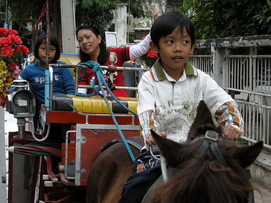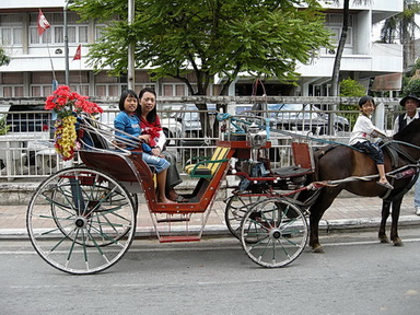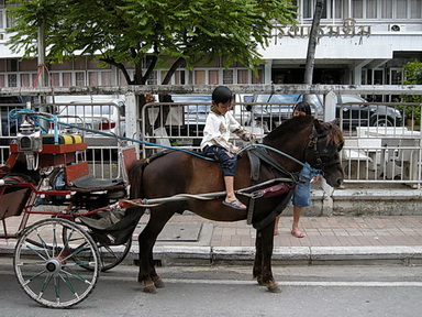 เมื่อวานกว่าจะซื้อของที่ตลาดทุ่งเกวียนเสร็จเกือบหกโมงเย็นต้องค้างที่ลำปาง โรงแรมที่เคยพักก็เต็ม ต้องขับรถวนอยู่นานถึงจะได้ที่พัก ส่วนใหญ่จะเต็มเพราะยังเป็นวันหยุดยาว หลังอาหารเช้าก็พาลูกนั่งรถม้าชมเมือง 200.-บาท