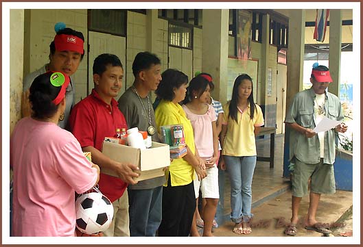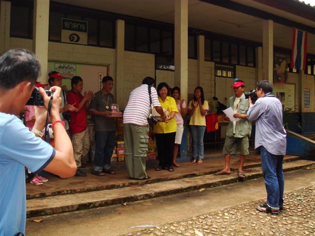 ทำพิธีมอบสิ่งของทั้งหมดให้กับ คุณครูใหญ่ โรงเรียนบ้านปากลำปิล๊อก เพื่อใช้ในกิจกรรมของโรงเรียน และโรงเรียนใกล้เคียง ต่อไป