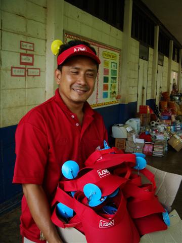 มองข้างหลังก็รู้ว่าใครไซร์นี้มีคนเดียว กำลังรับ เอ๊ย..มอบของบริจาค ให้คุณครู