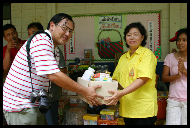 พี่เอนำทีมมอบสิ่งของแก่ครูใหญ่