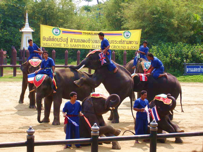 ลานแสดงช้าง และฟาร์มจระเข้ สวนสามพราน