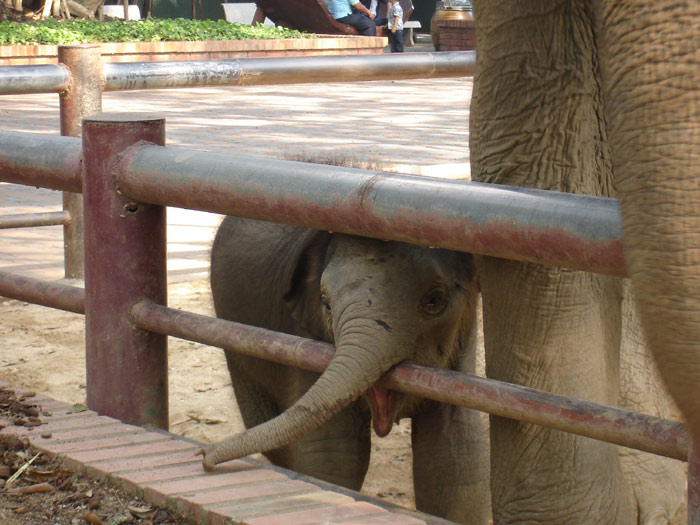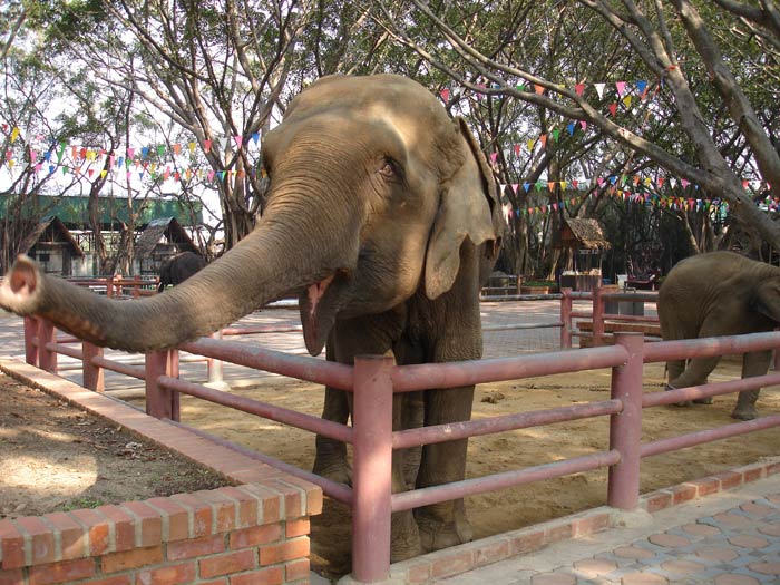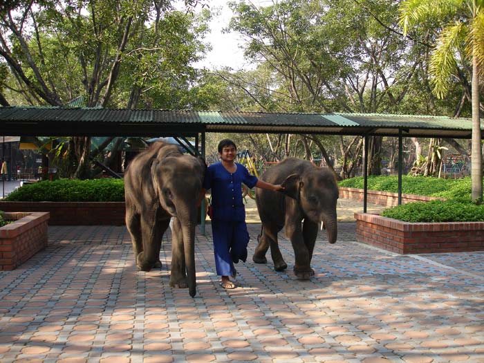 เจ้าหน้าที่เริ่มพาลูกช้างมาทักทายผู้ชมแล้วครับ