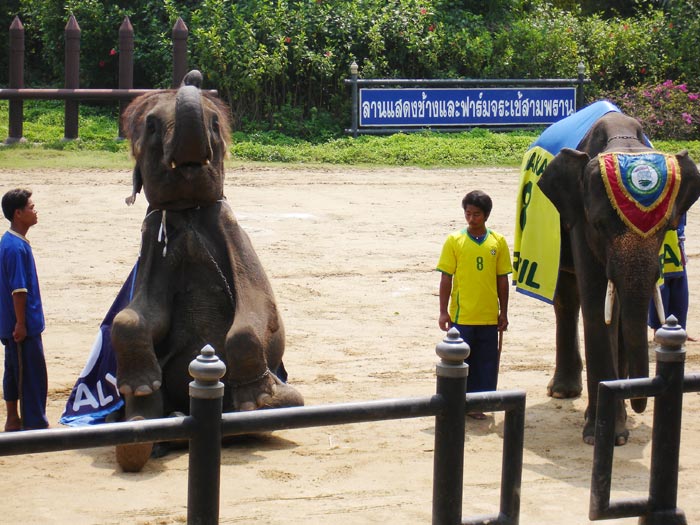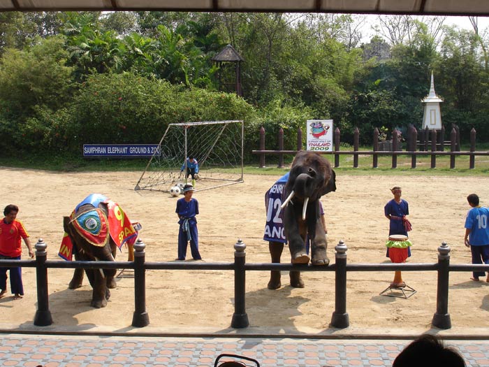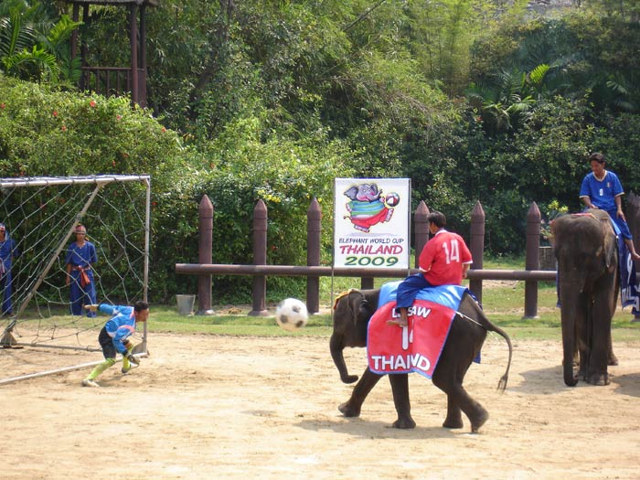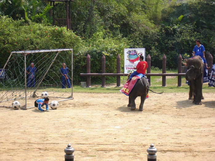 ต่อไปนี้ เป็นการโชว์ยิงประตูของนักฟุตบอลช้าง